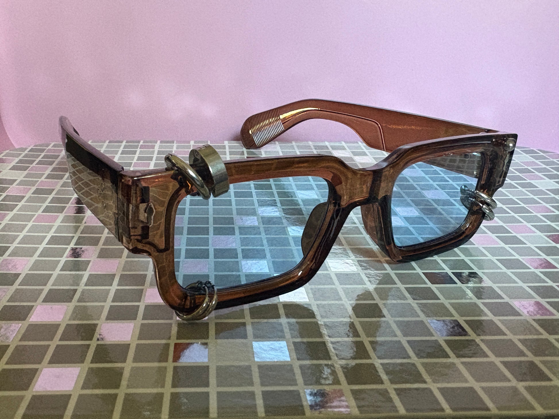 Sunnies for Sinners are handmade, 1 of 1, works of wearable art. Unique just like you. The piercings are real! Just like any piercing in your body, be sure to handle with care and check on it from time to time. We love to see photos of our Sinners on social, tag us in your posts! @sunniesforsinners