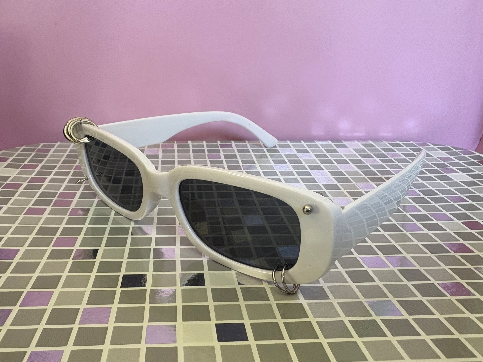 Sunnies for Sinners are handmade, 1 of 1, works of wearable art. Unique just like you. The piercings are real! Just like any piercing in your body, be sure to handle with care and check on it from time to time. We love to see photos of our Sinners on social, tag us in your posts! @sunniesforsinners