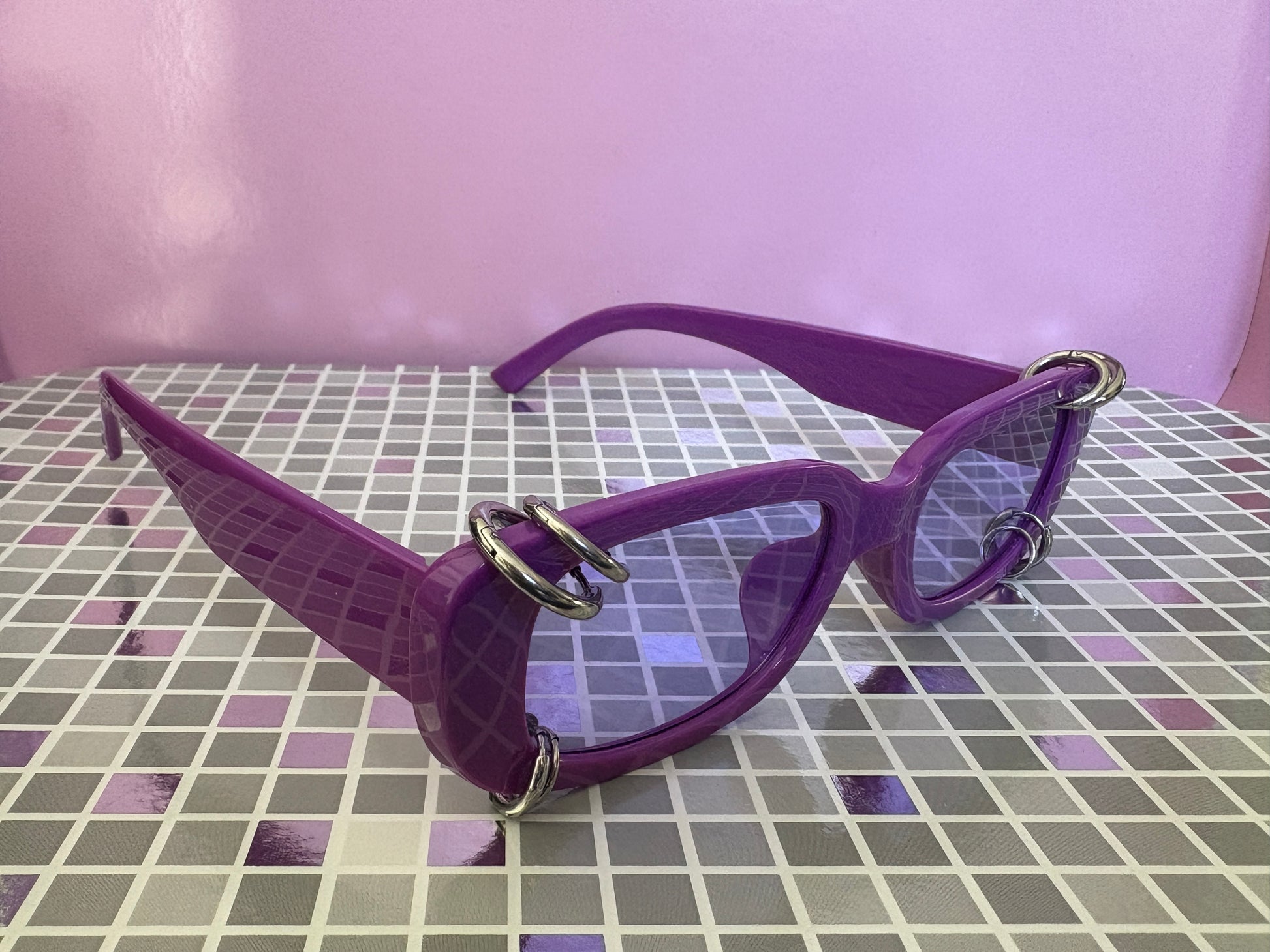 Sunnies for Sinners are handmade, 1 of 1, works of wearable art. Unique just like you. The piercings are real! Just like any piercing in your body, be sure to handle with care and check on it from time to time. We love to see photos of our Sinners on social, tag us in your posts! @sunniesforsinners