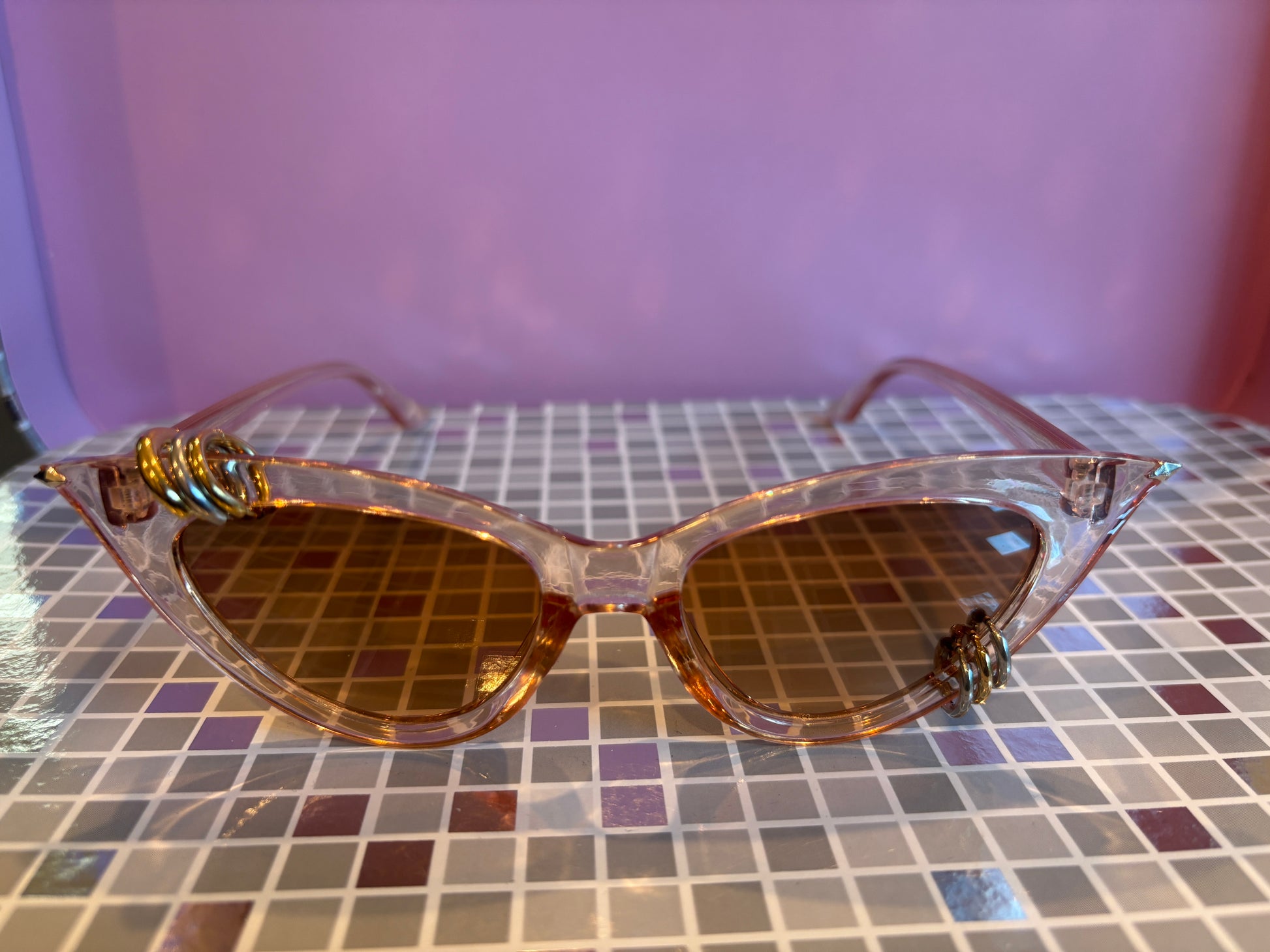 Sunnies for Sinners are handmade, 1 of 1, works of wearable art. Unique just like you. The piercings are real! Just like any piercing in your body, be sure to handle with care and check on it from time to time. We love to see photos of our Sinners on social, tag us in your posts! @sunniesforsinners