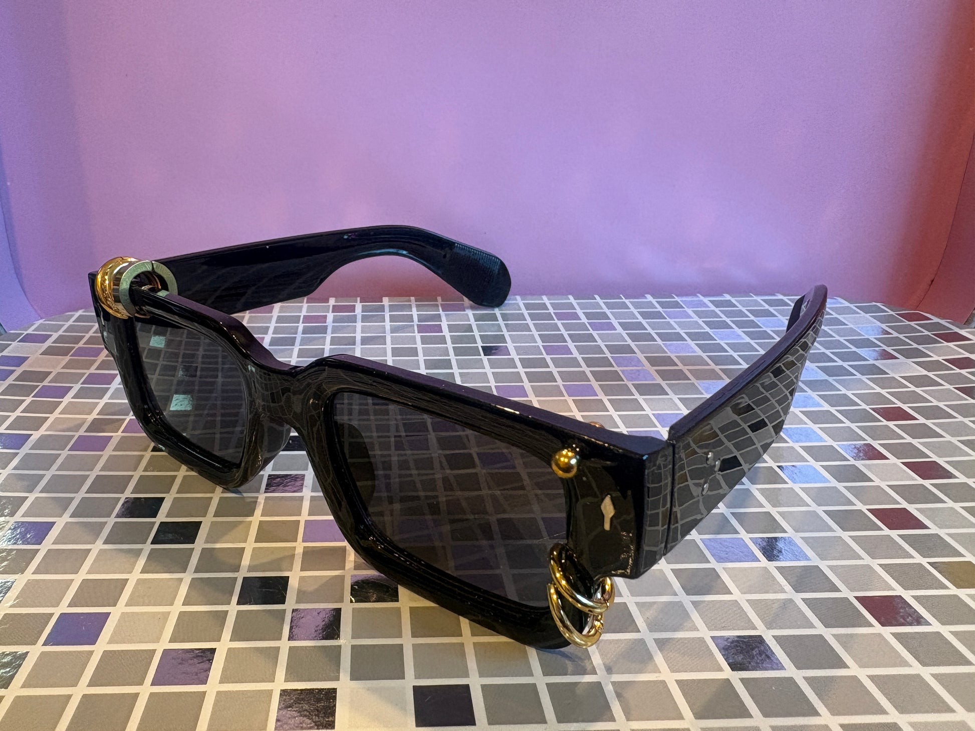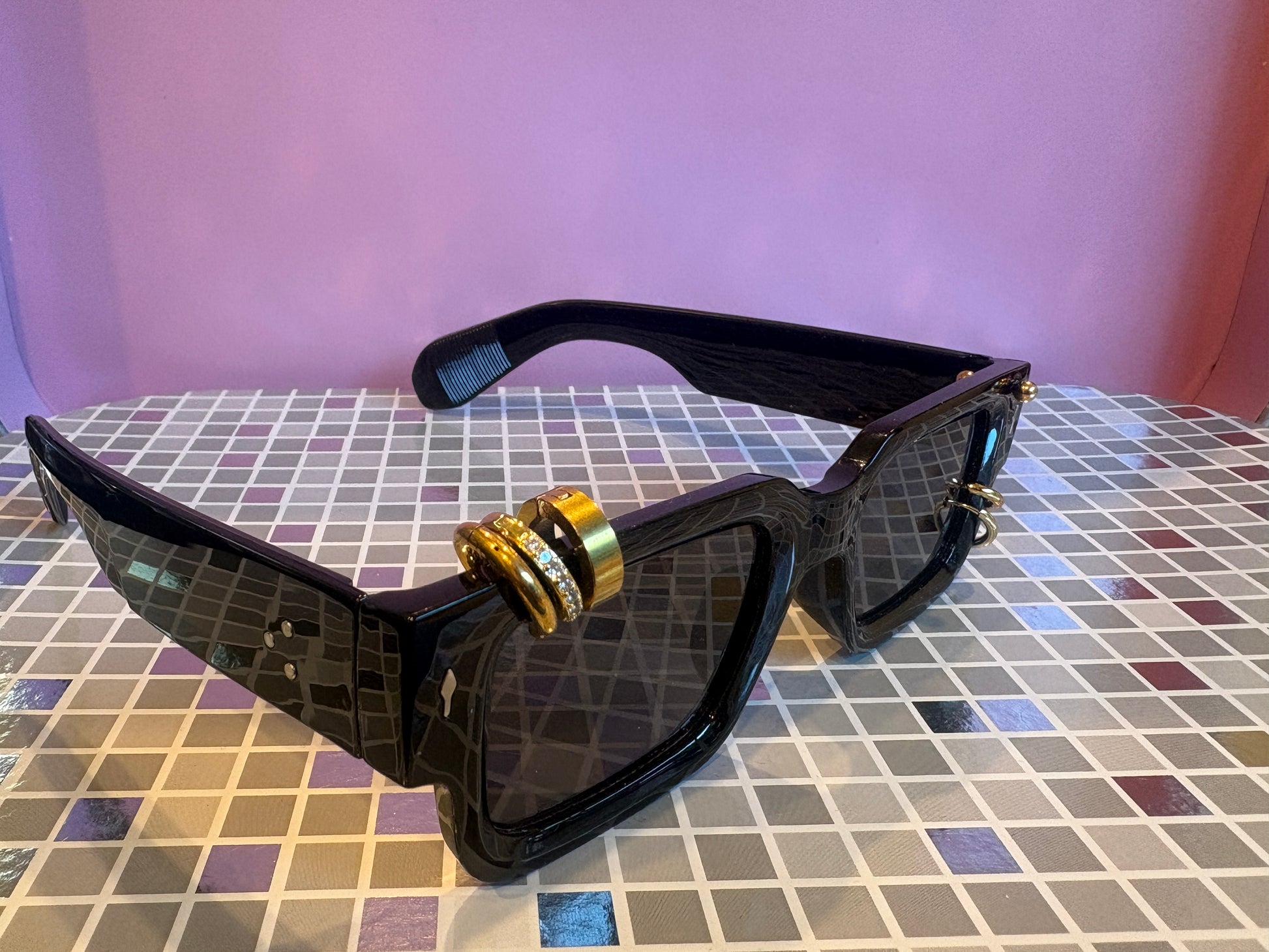 Sunnies for Sinners are handmade, 1 of 1, works of wearable art. Unique just like you. The piercings are real! Just like any piercing in your body, be sure to handle with care and check on it from time to time. We love to see photos of our Sinners on social, tag us in your posts! @sunniesforsinners