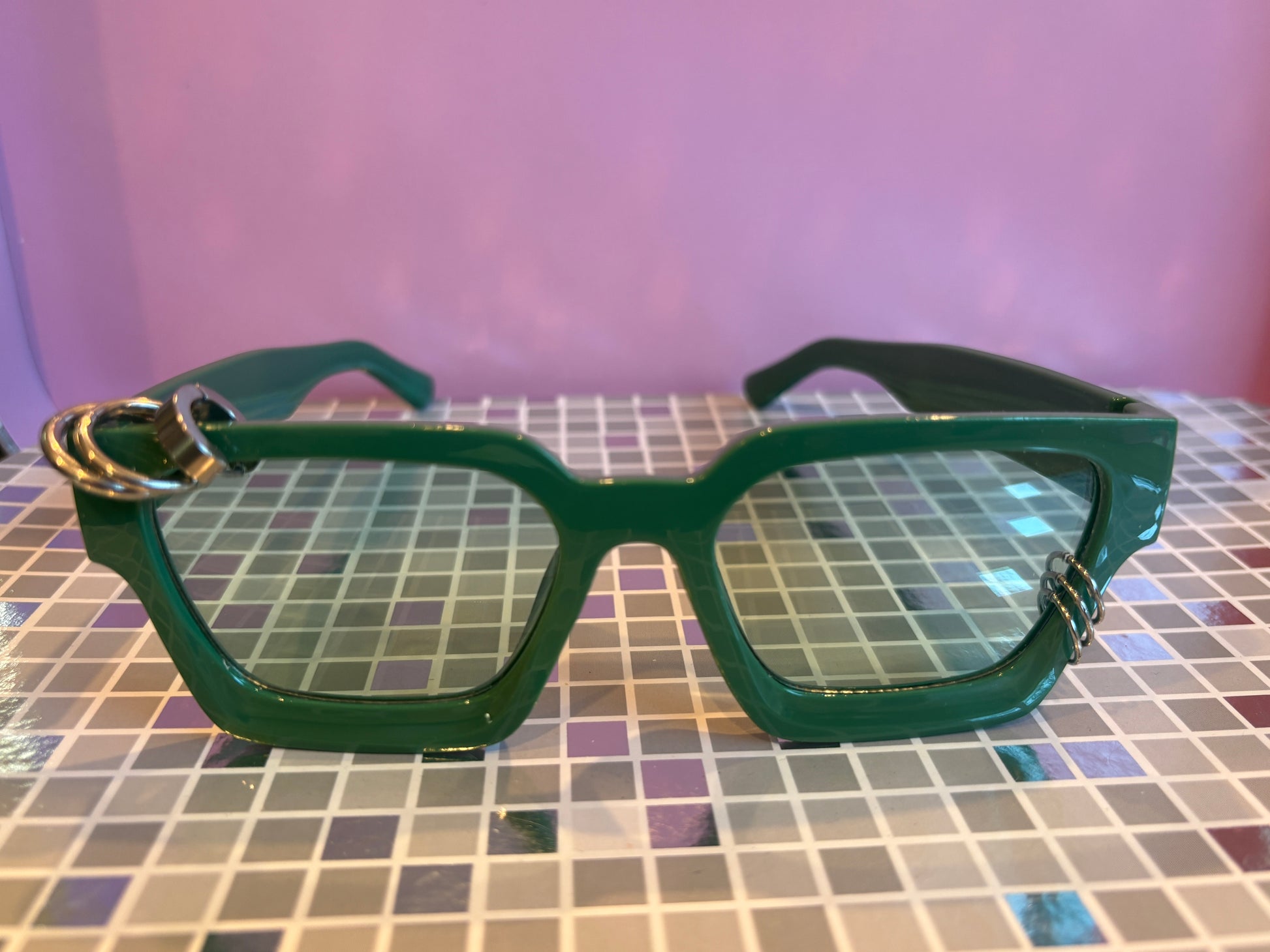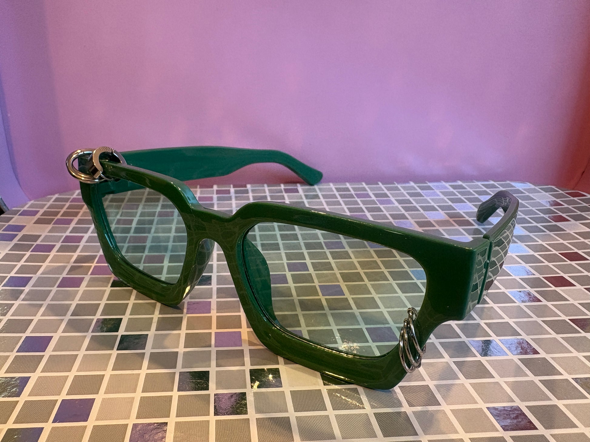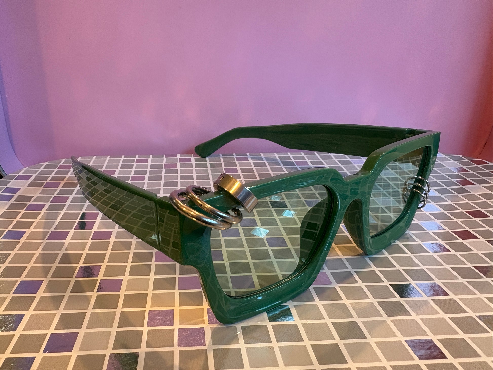Sunnies for Sinners are handmade, 1 of 1, works of wearable art. Unique just like you. The piercings are real! Just like any piercing in your body, be sure to handle with care and check on it from time to time. We love to see photos of our Sinners on social, tag us in your posts! @sunniesforsinners